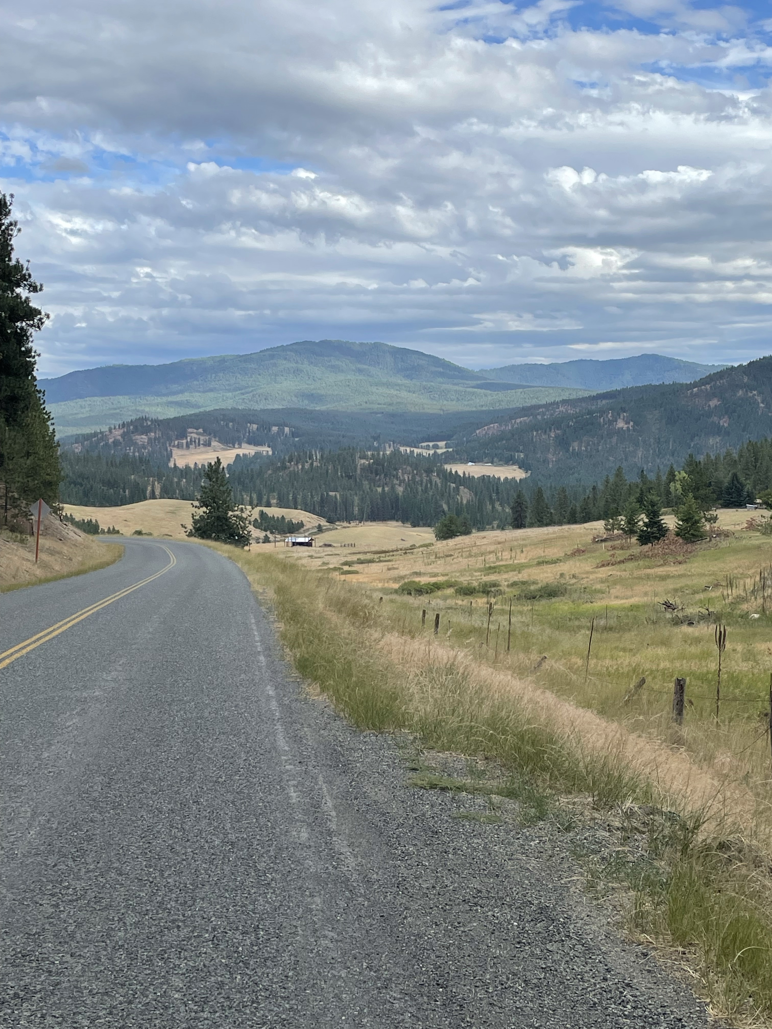 I had a wonderful evening in the small town of Republic (population 1000) (it’s hard to wrap your head around a town with a population 1/3 the size of the high school I used to teach). My warmshowers hosts Patty and Rob spoiled me with a wonderful dinner including fresh veggies from their garden followed by swapping stories about our kids, weddings, and grandchildren. They sent me off with a great breakfast. The days ride was hot with the very difficult climb over Sherman Pass then on to Colville. My warmshowers host in Colville was nice enough to text me to remind me to pick up food in Colville as there was nothing close to their house.