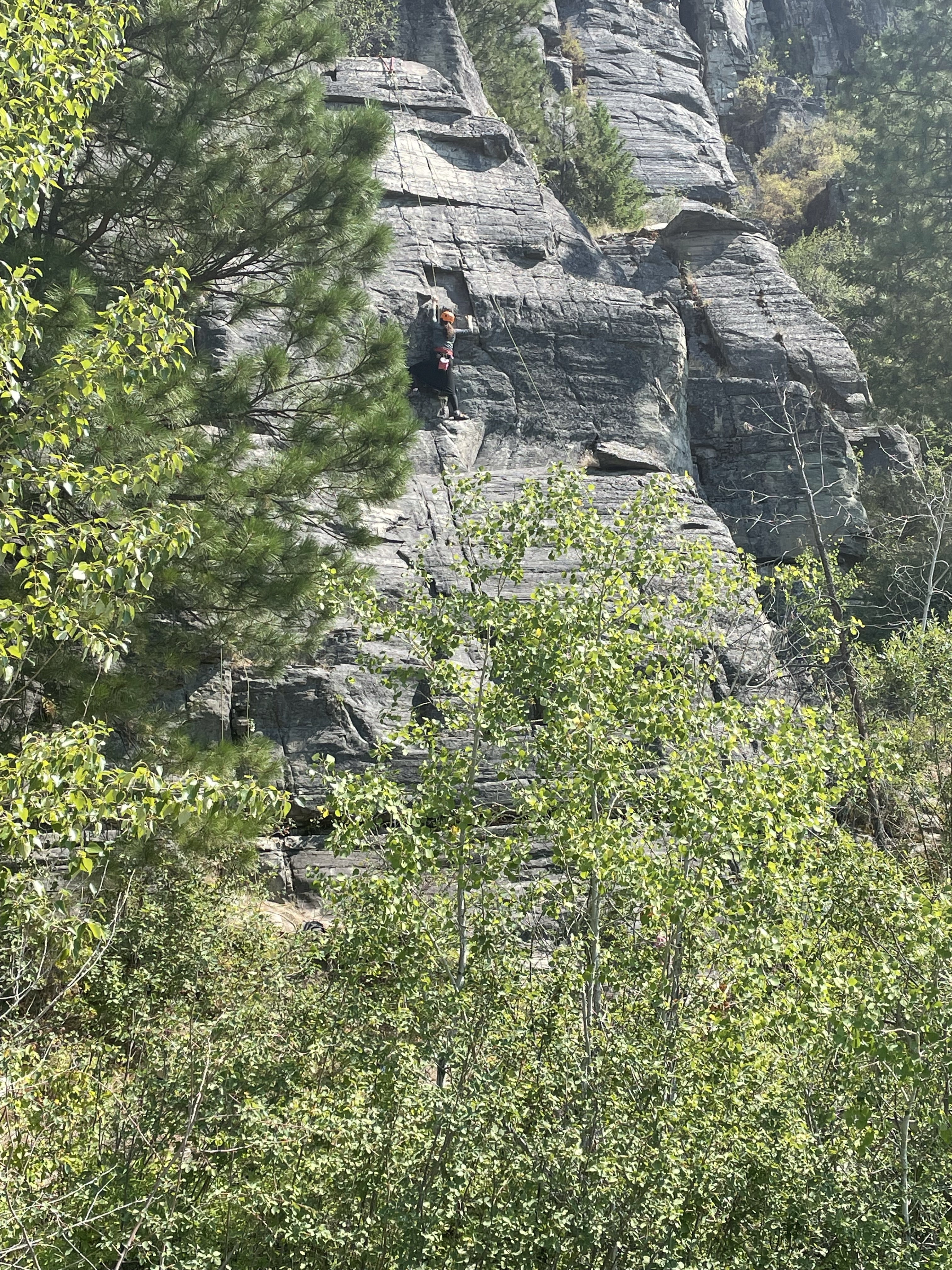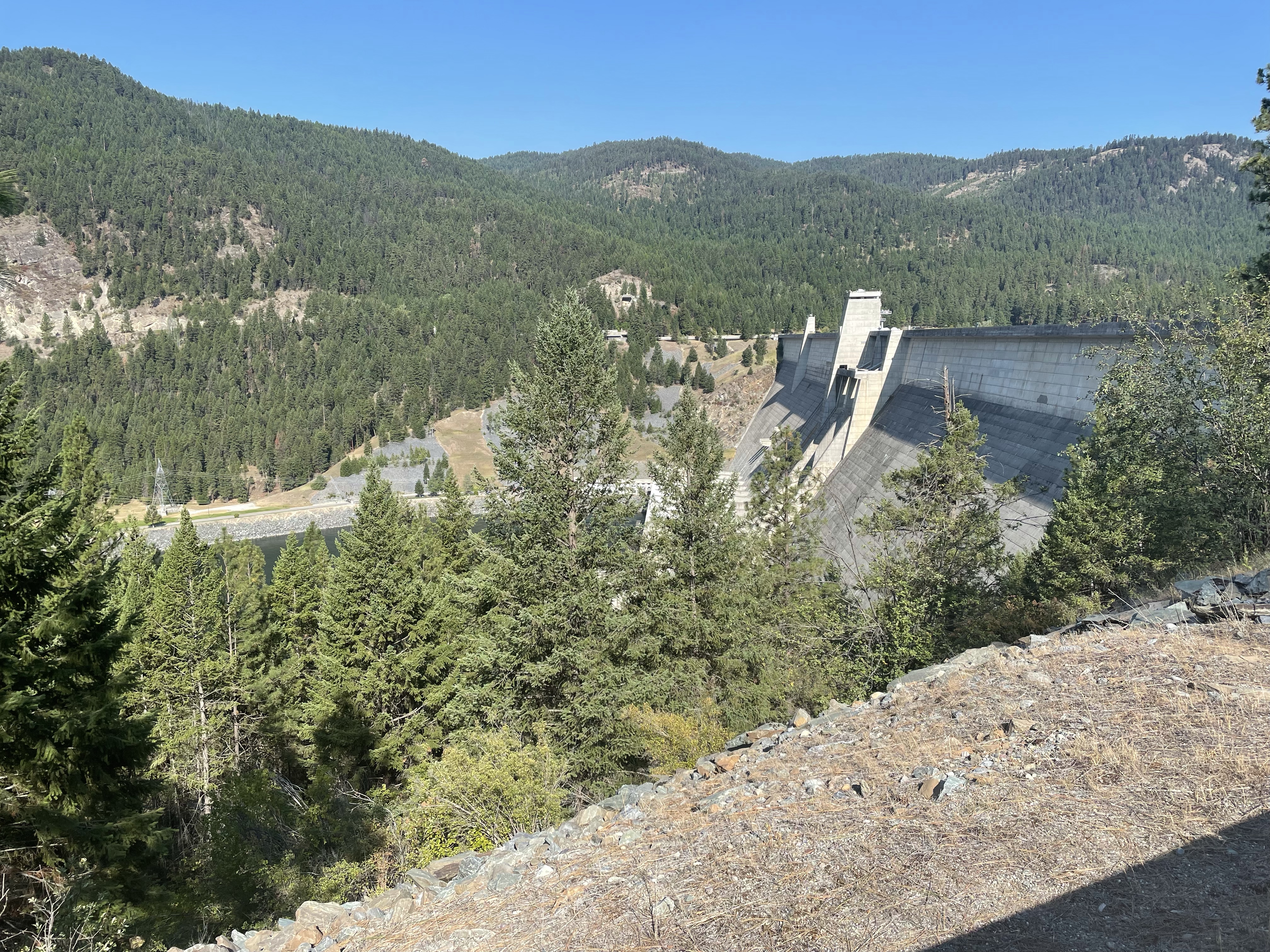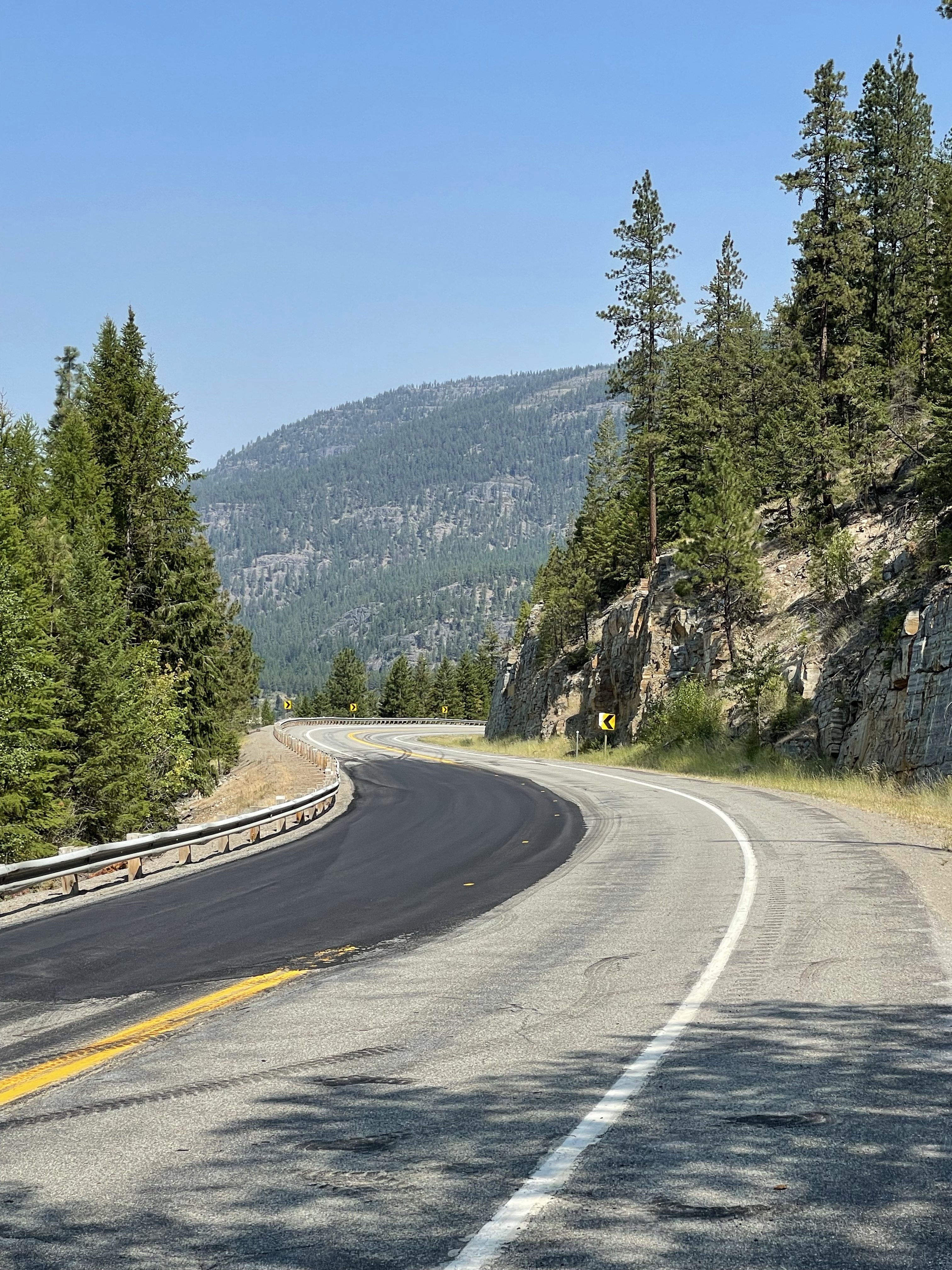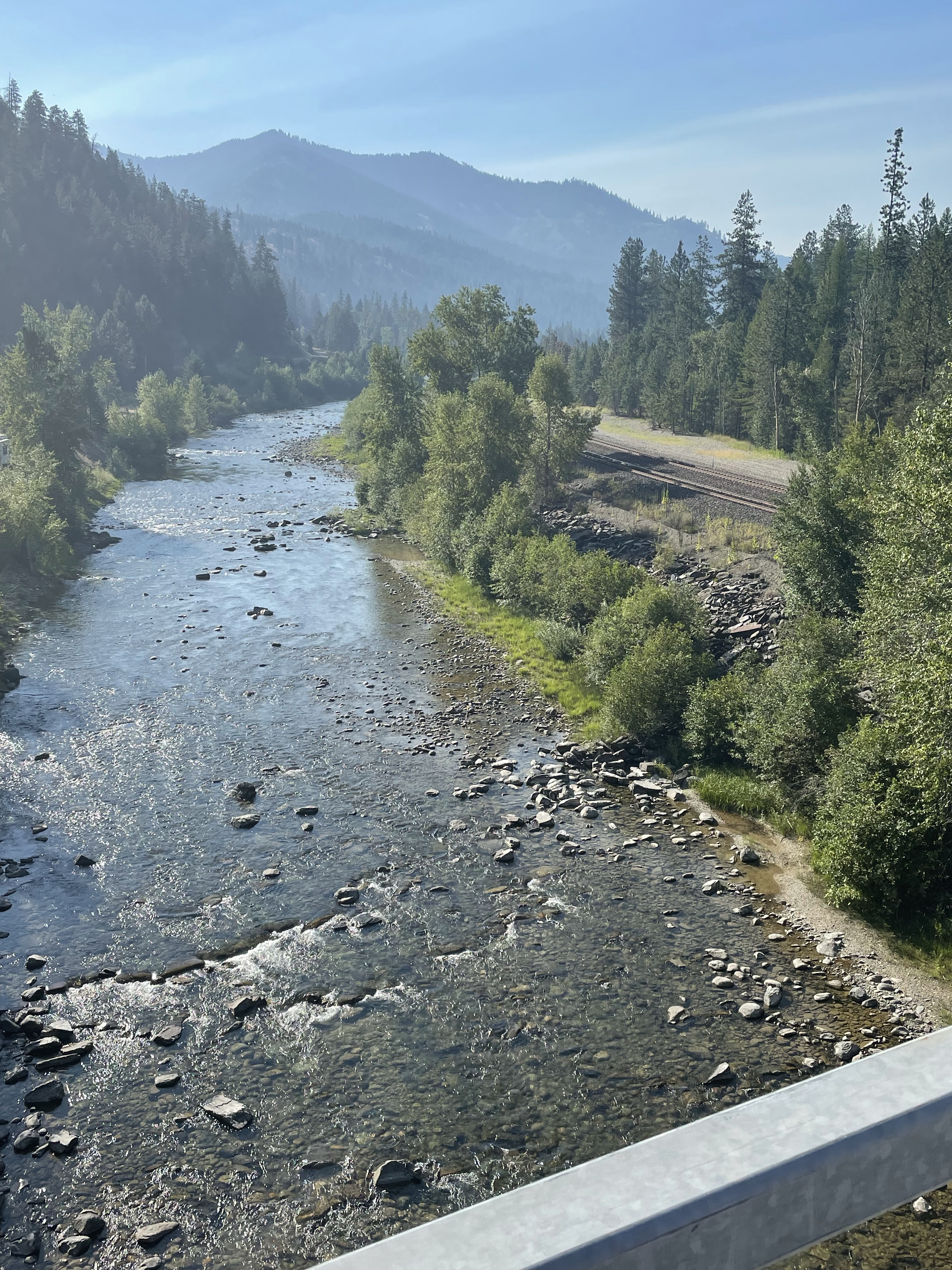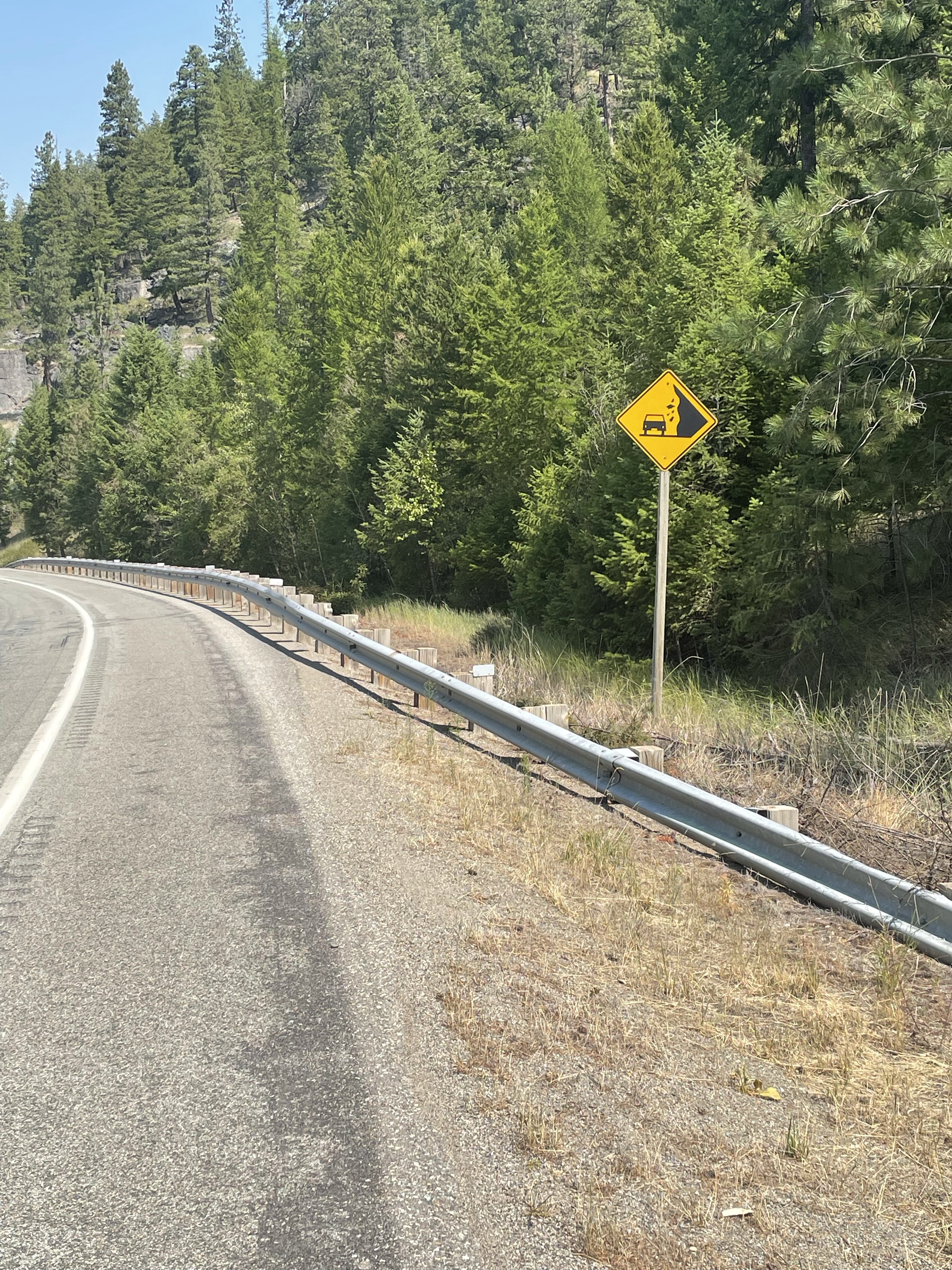 Water water everywhere and not a drop to drink. It was a beautiful ride today from Libby up to Eureka that followed along lake Koocanusa that runs for 90 miles from Libby up into Canada. With all that shoreline there was not a single house built on it anywhere that I saw. It is a beautiful unspoiled lake in northern Montana with great fishing (so I was told). The lake was always 100 feet below the the road so I couldn’t get down to filter water except for one location. So, it was a very long dry day. With all the solitude of that remote area it came as quite a surprise to me when I heard voices while I was riding. I pulled over to make sure I wasn’t hallucinating. I happily discovered rock climbers hanging from the rocks close to the road. Shortly after the rock climbers I meet a west bound cyclist that took the train from Chicago to whitefish and was cycling to Seattle from there. We swapped info about what was ahead and I gave him some extra water as I was less than 10 miles from my stopping point.